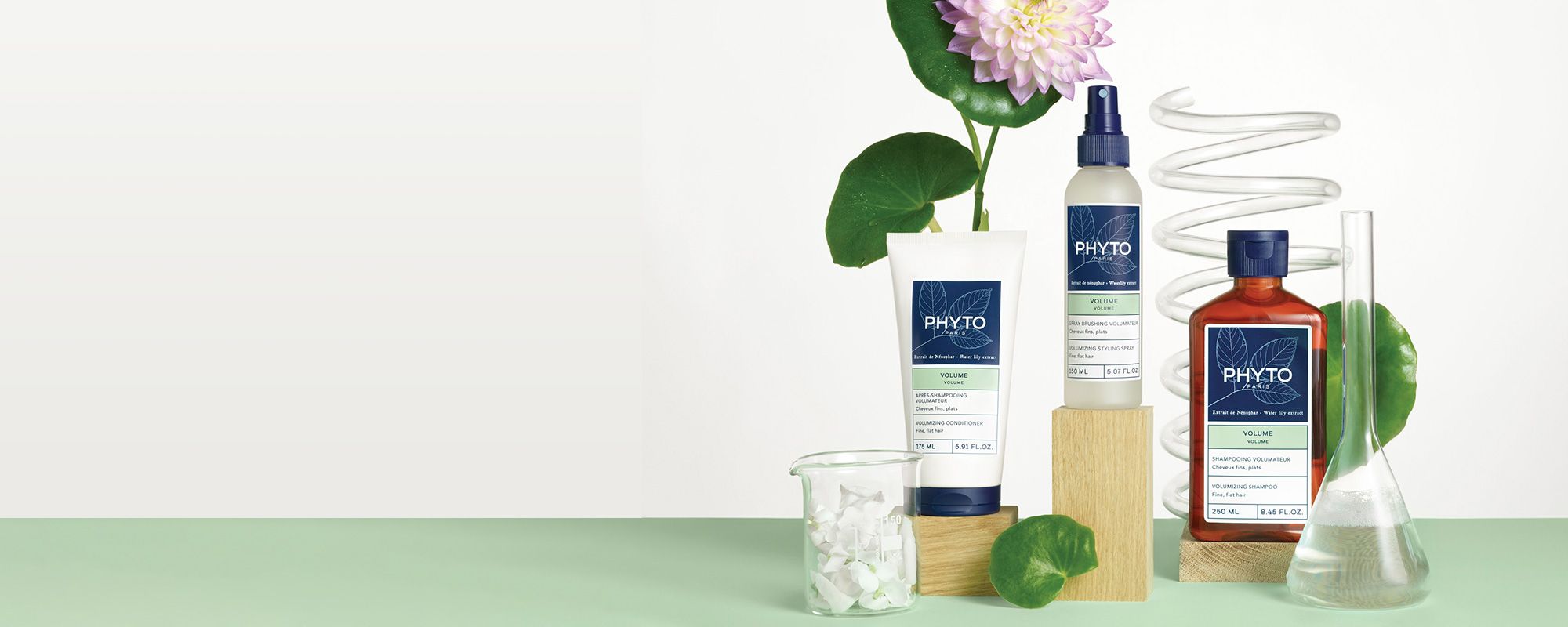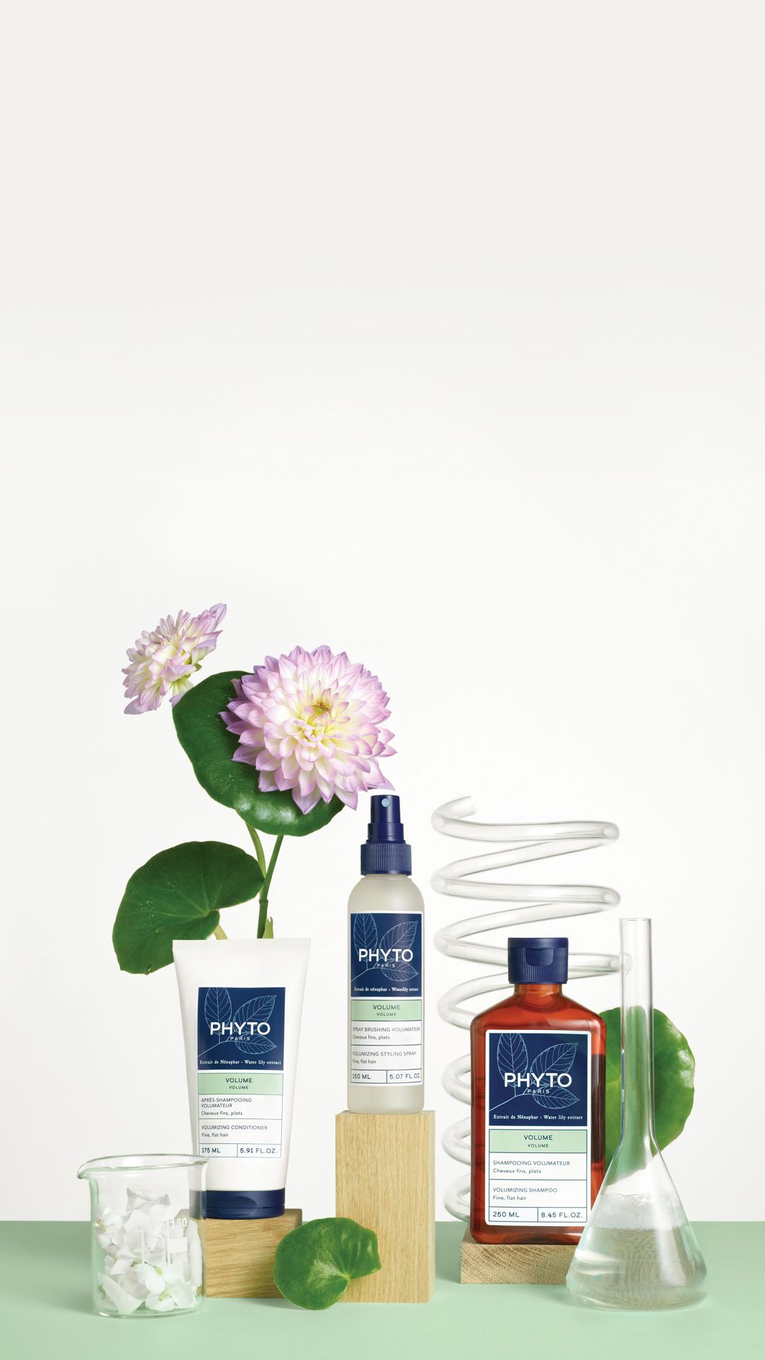 Formulated with water lily extract that adds body and volume to hair from the roots.