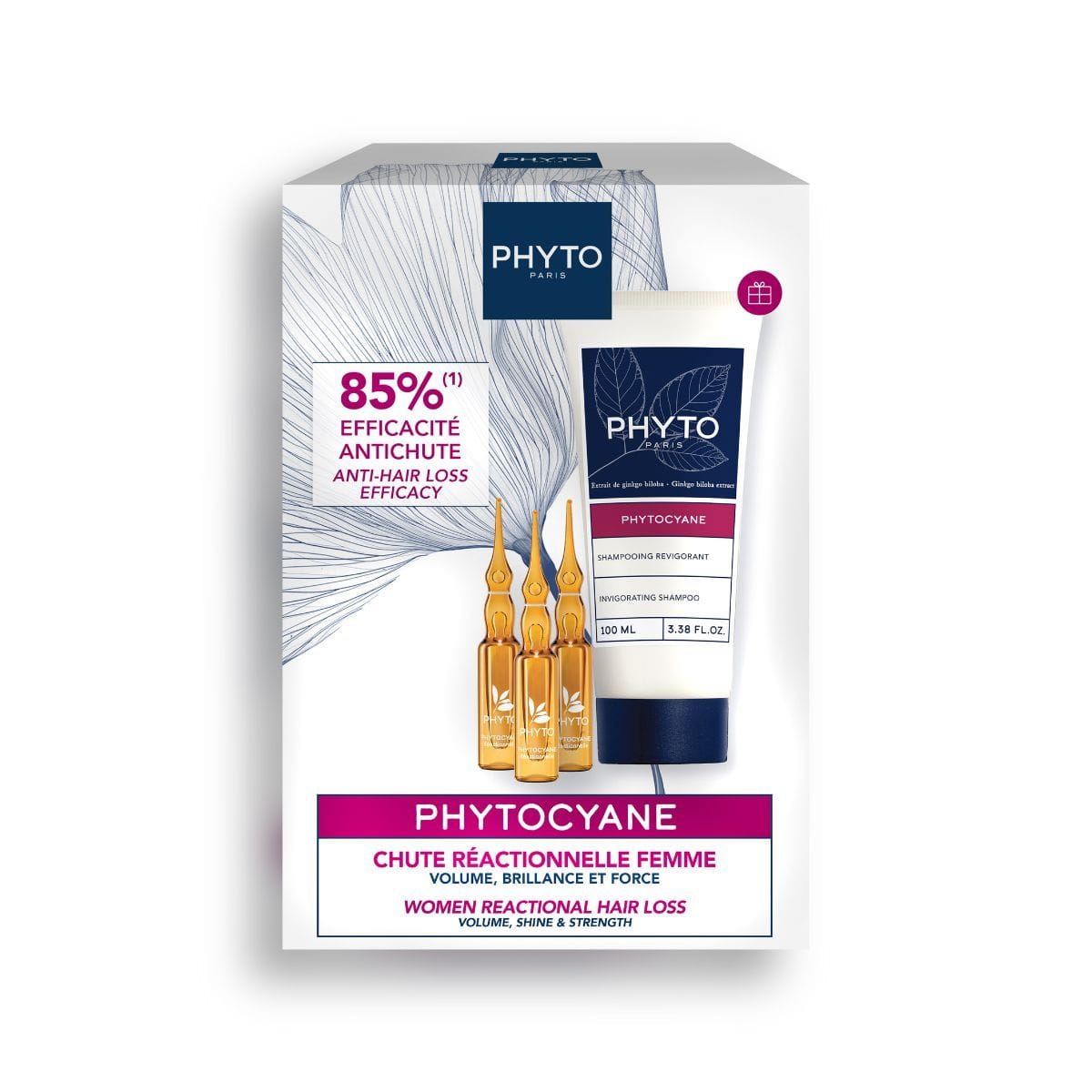 The complete PHYTOCYANE Anti-hair loss ritual to slow down reactional hair loss, regain volume and shine.